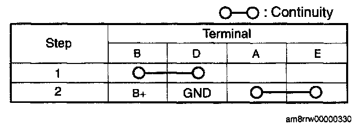 Verify the continuity between the relay terminals.