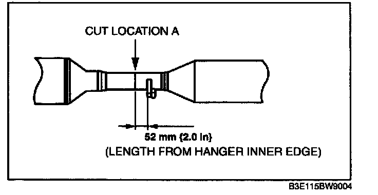 3. Cut the pipe between the TWC and presilencer using the following procedure. (Cut location A)