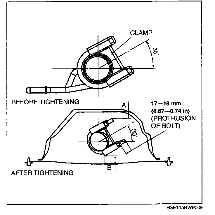 (2) Set the U-shaped bolt so that the clearance between the bolt and surrounding parts is as indicated in the figure.