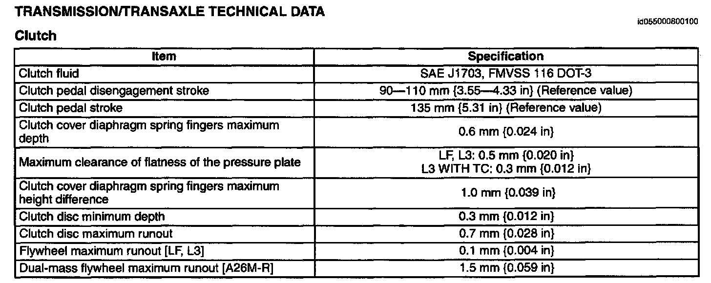 Transmission/Transaxle Technical Data Clutch: