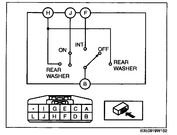 REAR WIPER AND WASHER SWITCH INSPECTION1. Verify that the continuity between the rear wiper and washer switch terminals is as indicated in the table.