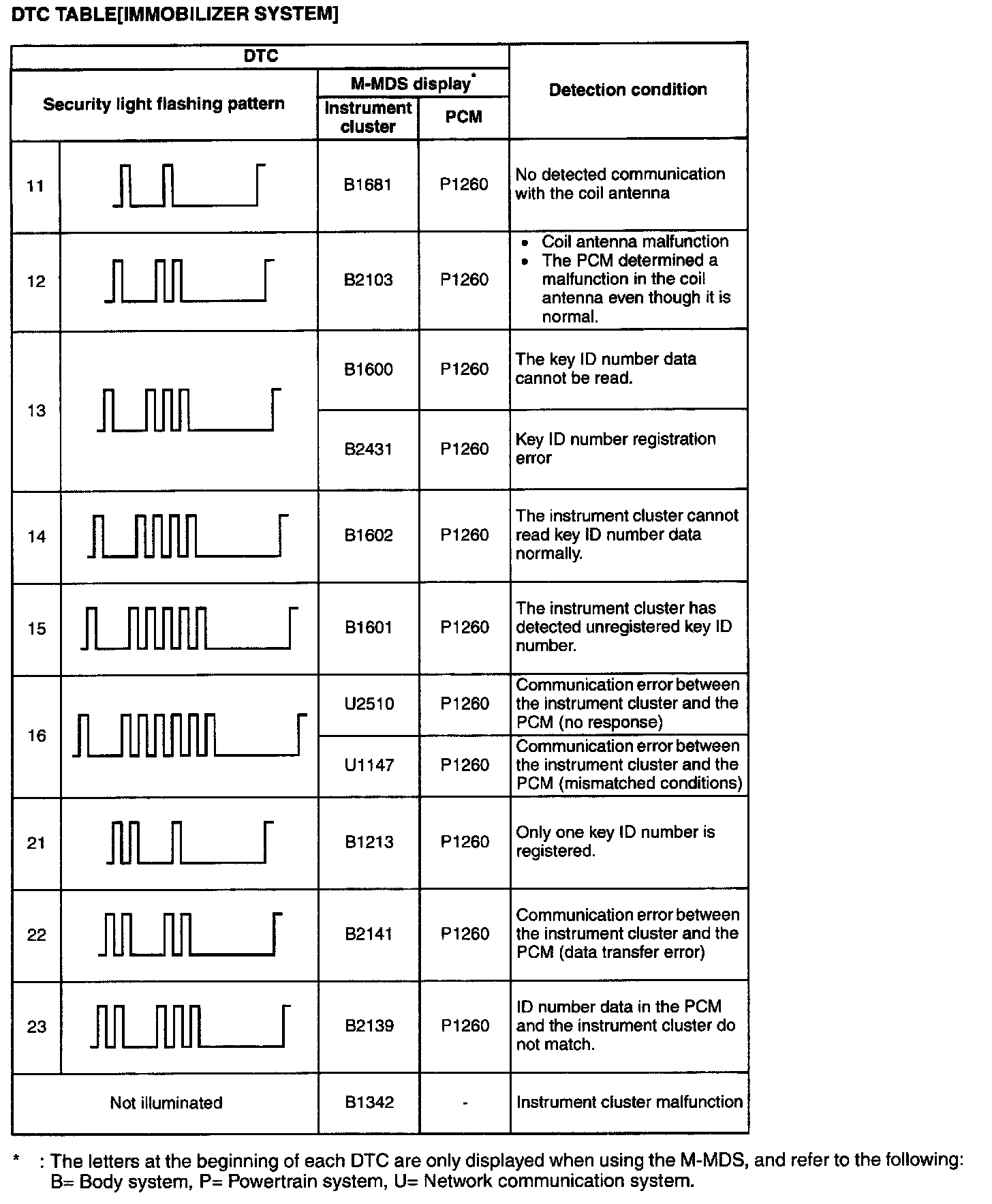 DTC Table(Immobilizer System):