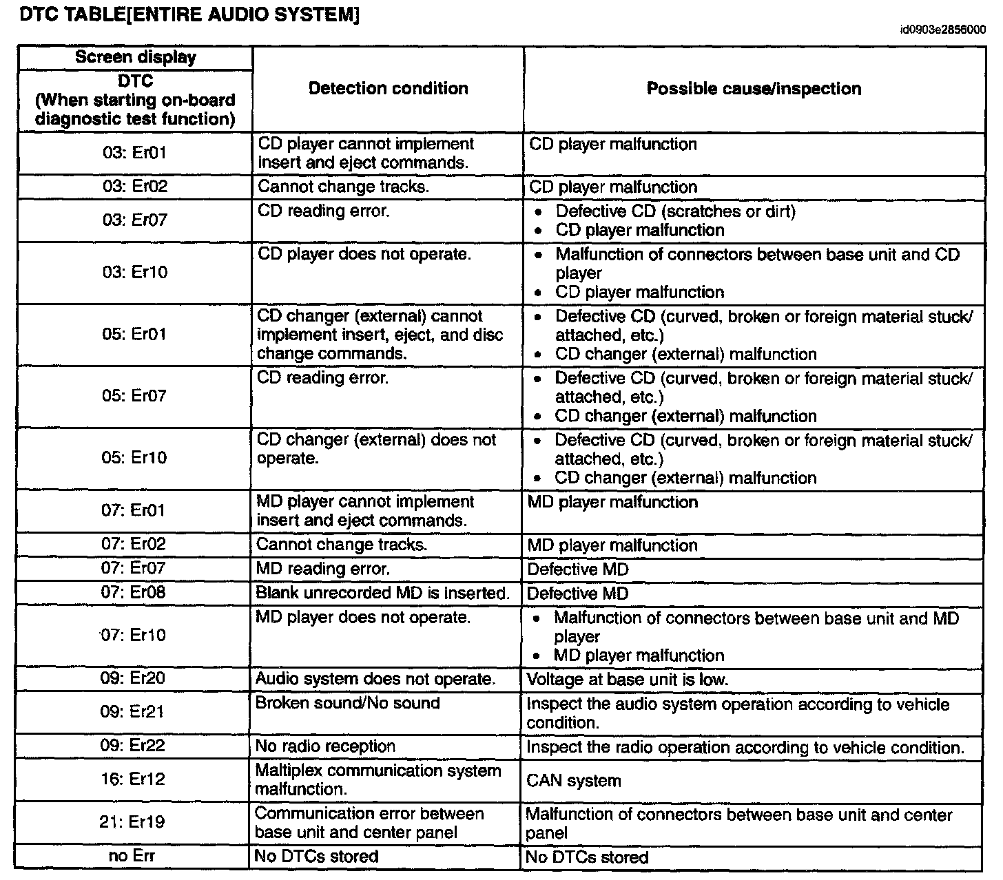 DTC Table(Entire Audio System):
