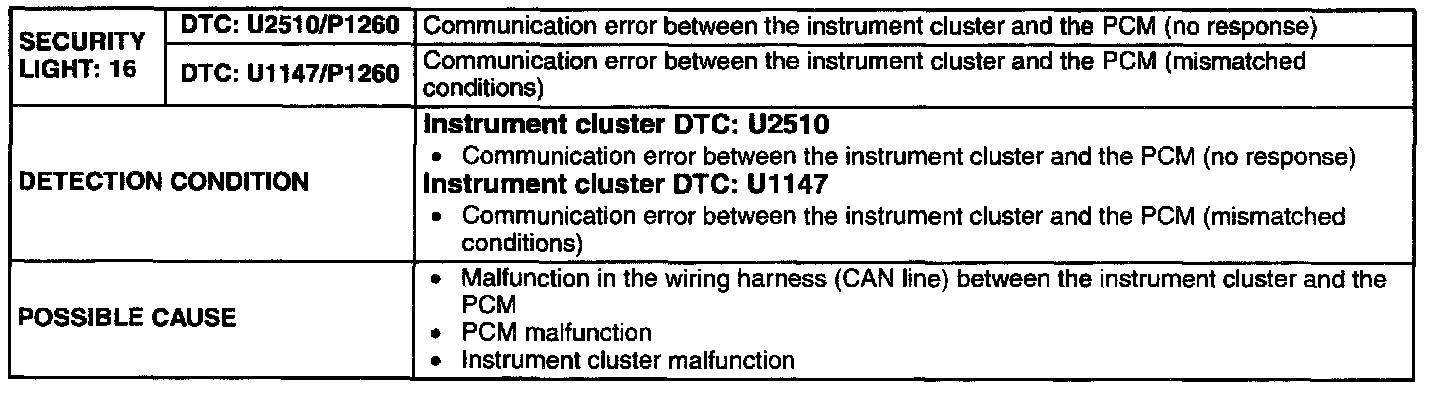 Immobilizer System Security Light Codes