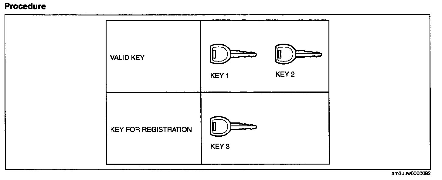 - When replacing only the PCM, start from Step 2. Also, when key 1 is indicated within the procedure, any valid key can be used.