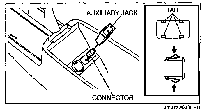 4. Squeeze the tabs of auxiliary jack and pull it outward to remove it.