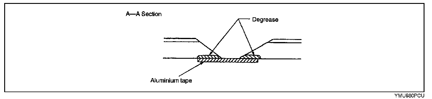 - For repair of a hole, degrease the area on both sides of the bumper and apply aluminium tape on the reverse side of the damage area.