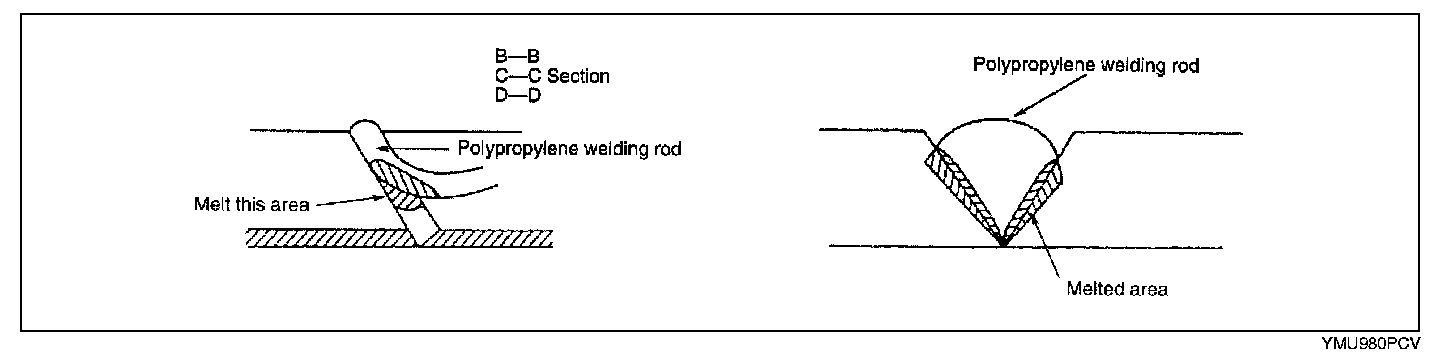 - Take care not to overly melt welding rod. If the part is welded with the welding rod melted like jelly, the welding strength will be reduced.