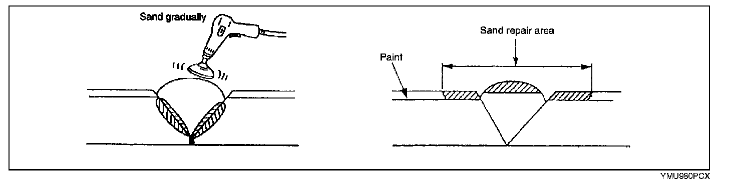 - If excessive force is applied to the area when sanding, the surface will be damaged.