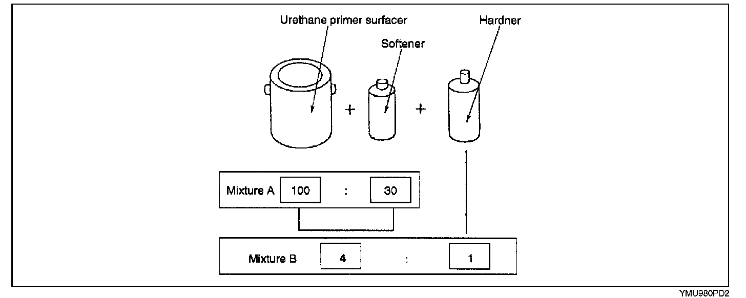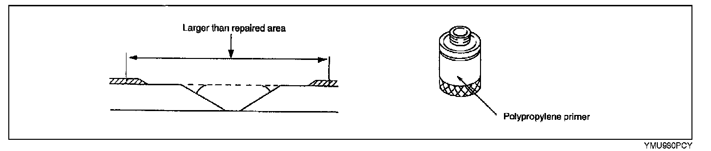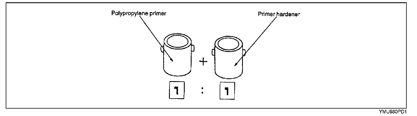 NOTE: Be sure to use only urethane primer for a urethane bumper and polypropylene primer for a polypropylene bumper. Other paints for repairing a polypropylene bumper are the same as those for the urethane bumper.