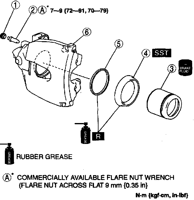 Warning: When blowing compressed air into the caliper body the piston may pop out and cause injury if not supported at the correct point. Securely support the piston friction surface by hand when blowing compressed air.
