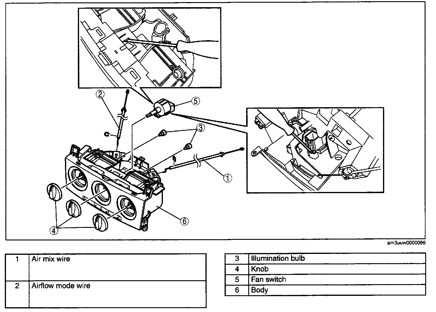 CLIMATE CONTROL UNIT DISASSEMBLY/ASSEMBLY[MANUAL AIR CONDITIONER]1. Disassemble in the order indicated in the table.