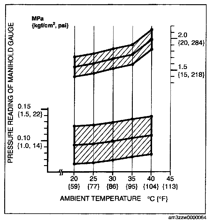 10. Verify that the intersection of the pressure reading of the manifold gauge and ambient temperature is in the shaded zone.