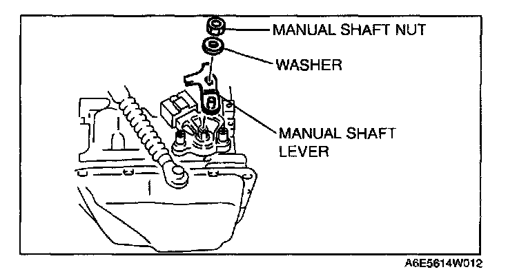 Caution: Do not use an impact wrench. Hold the manual shaft lever when removing the manual shaft nut, or the transaxle may be damaged.