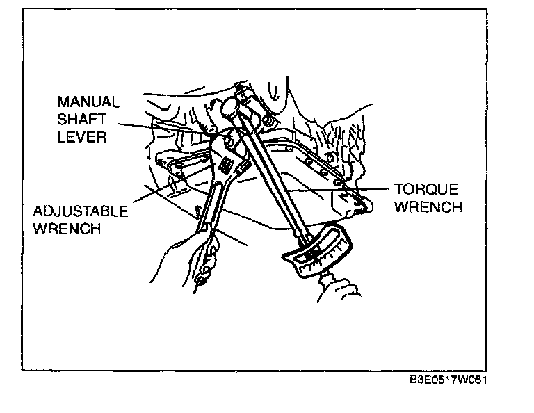 6. Set the adjustable wrench as shown in the figure to hold the manual shaft lever.