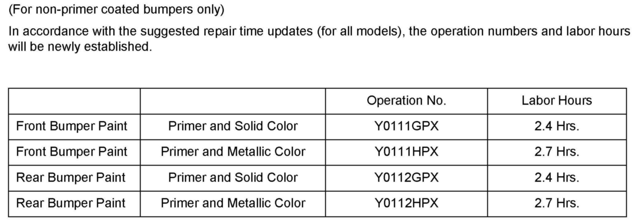 Service bumpers will no longer be supplied with a primer coating. Non-primered bumpers will be supplied once the current inventory of primer coated bumpers is depleted.