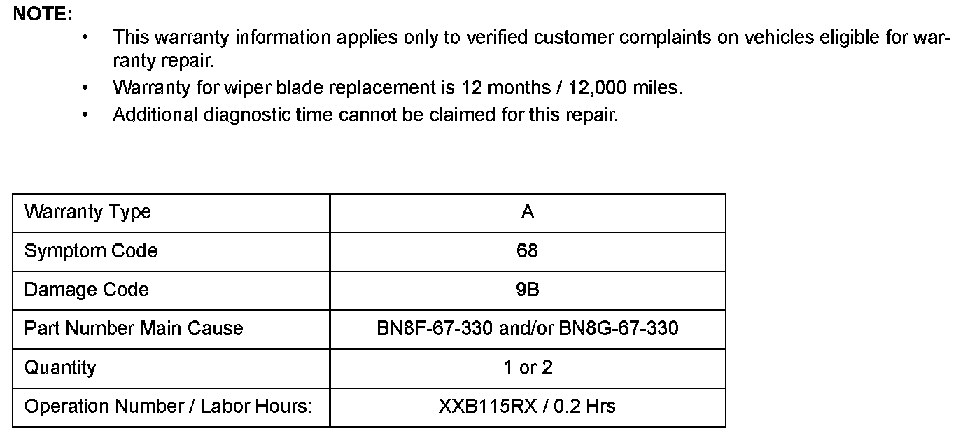 Some customers may complain that the front wipers do not effectively clean the windshield in cold ambient temperatures. New wiper blades have been introduced to correct this concern.