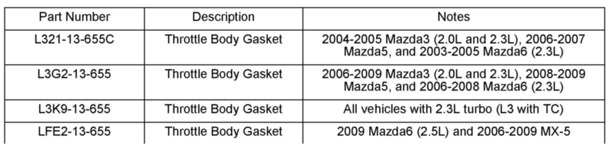 2003-2009 Mazda6 with 2.3L/2.5L (including Mazdaspeed6)