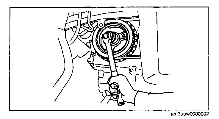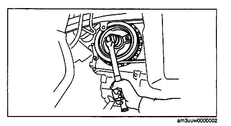 1. Hold the crankshaft pulley to prevent the drive plate from rotating.