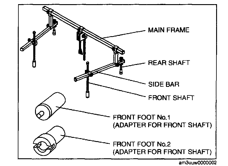 (3) Install front foot No.2 to the left/right front shaft of the SST, then align the groove of the front shaft of the SST with the folded up part of the vehicle as shown in the figure.
