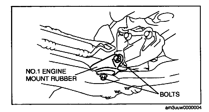 2. Install the No. 1 engine mount rubber to the crossmember and temporarily tighten bolts.