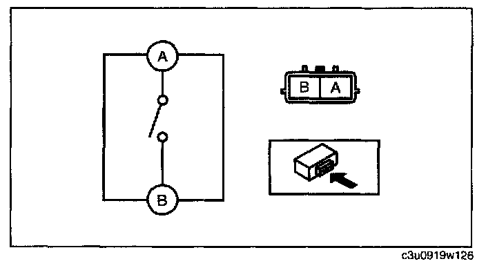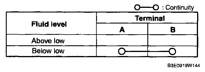 2. Inspect for continuity between the washer fluid-level sensor terminals using an ohmmeter.