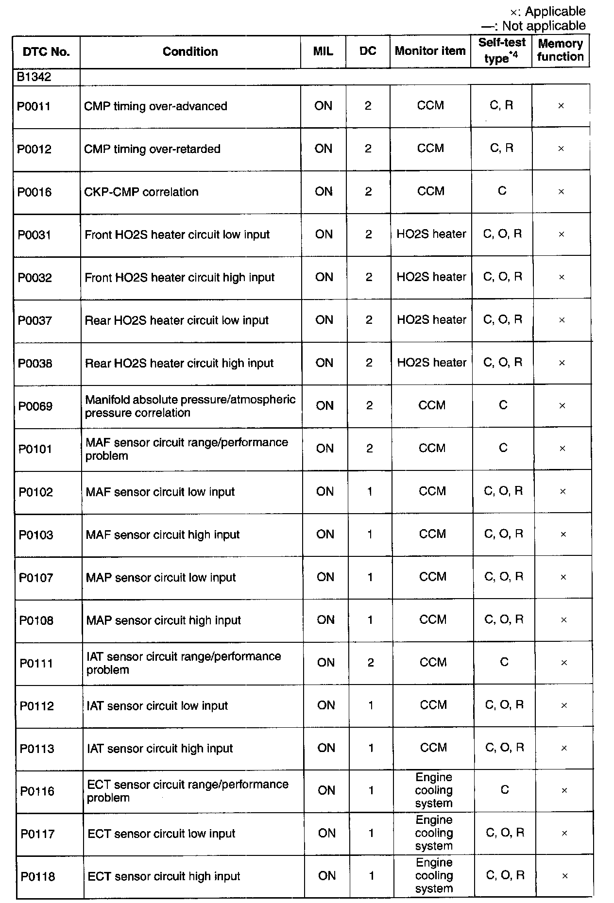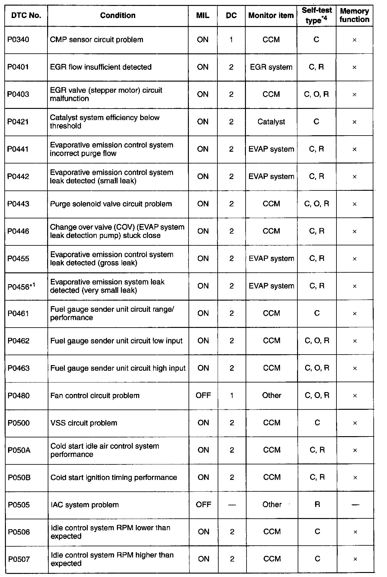 DTC P0340-P0507: