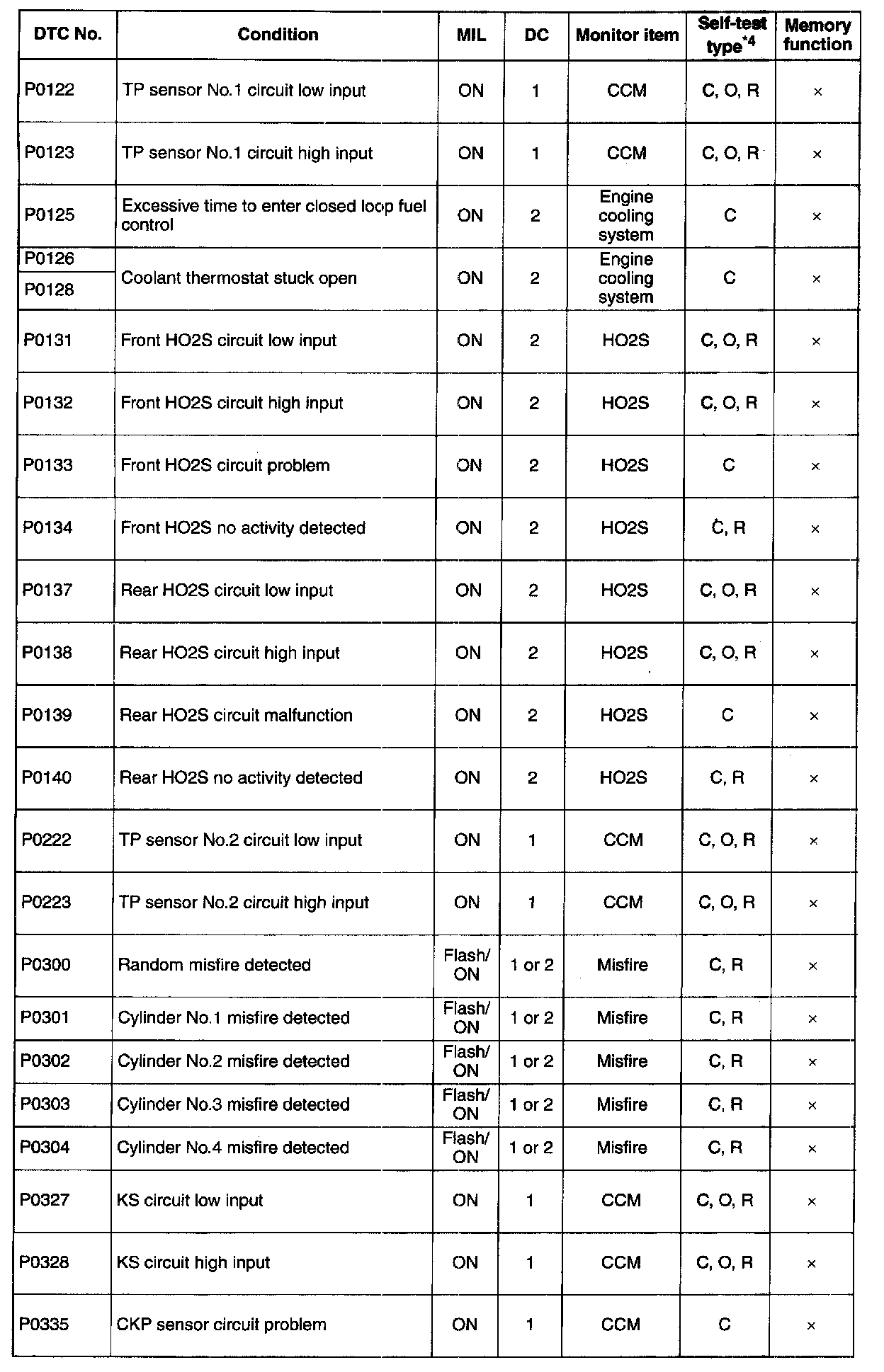 DTC P0122-P0335: