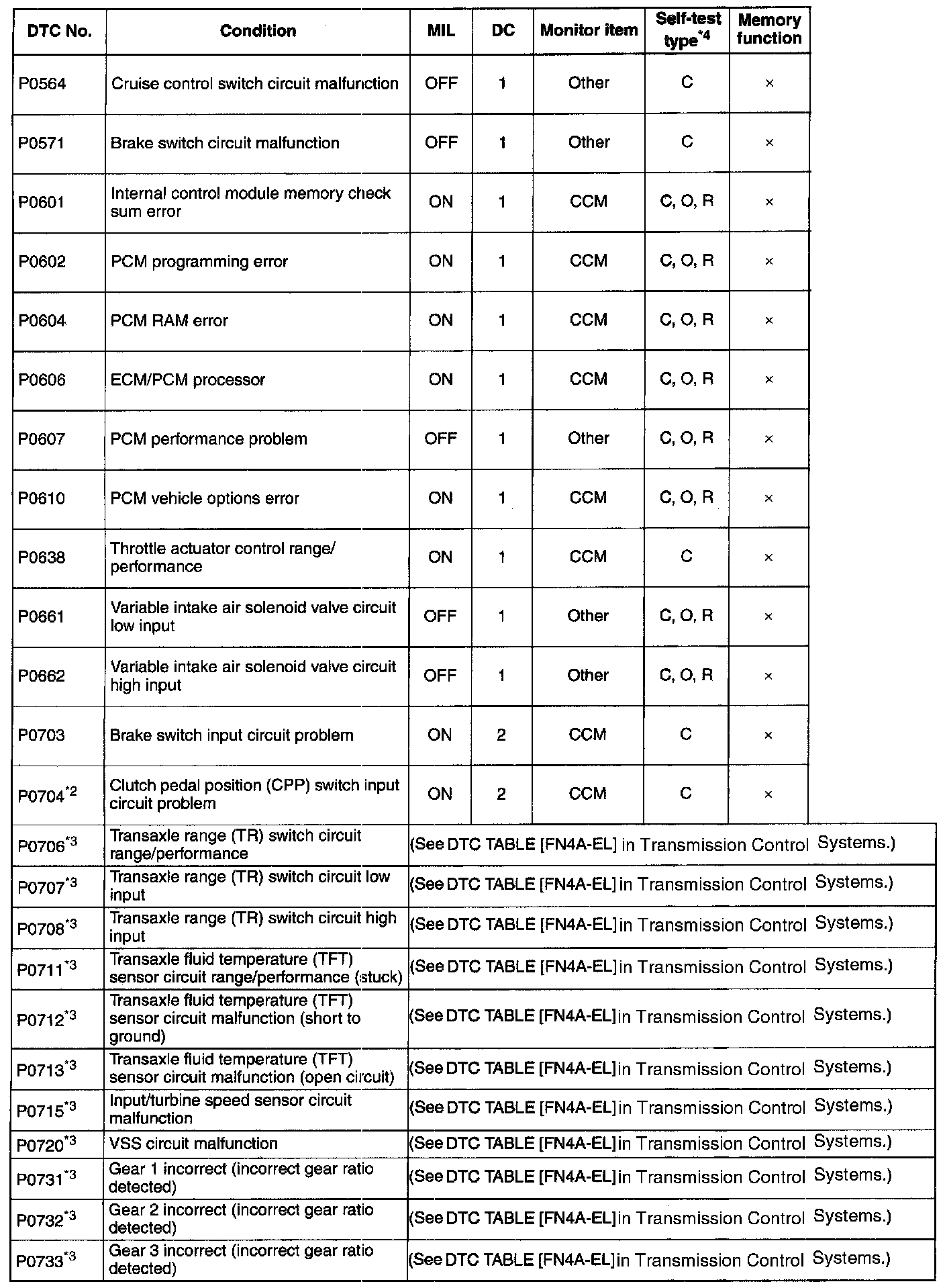 DTC P0564-P0733: