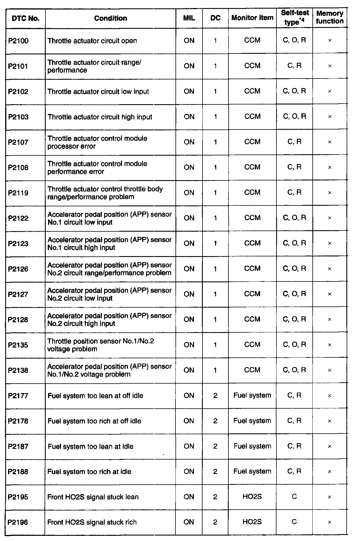 DTC P2100-P2196: