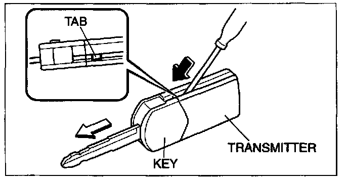 1. Insert a small screwdriver into the slot and push the tab to remove the key from the transmitter.