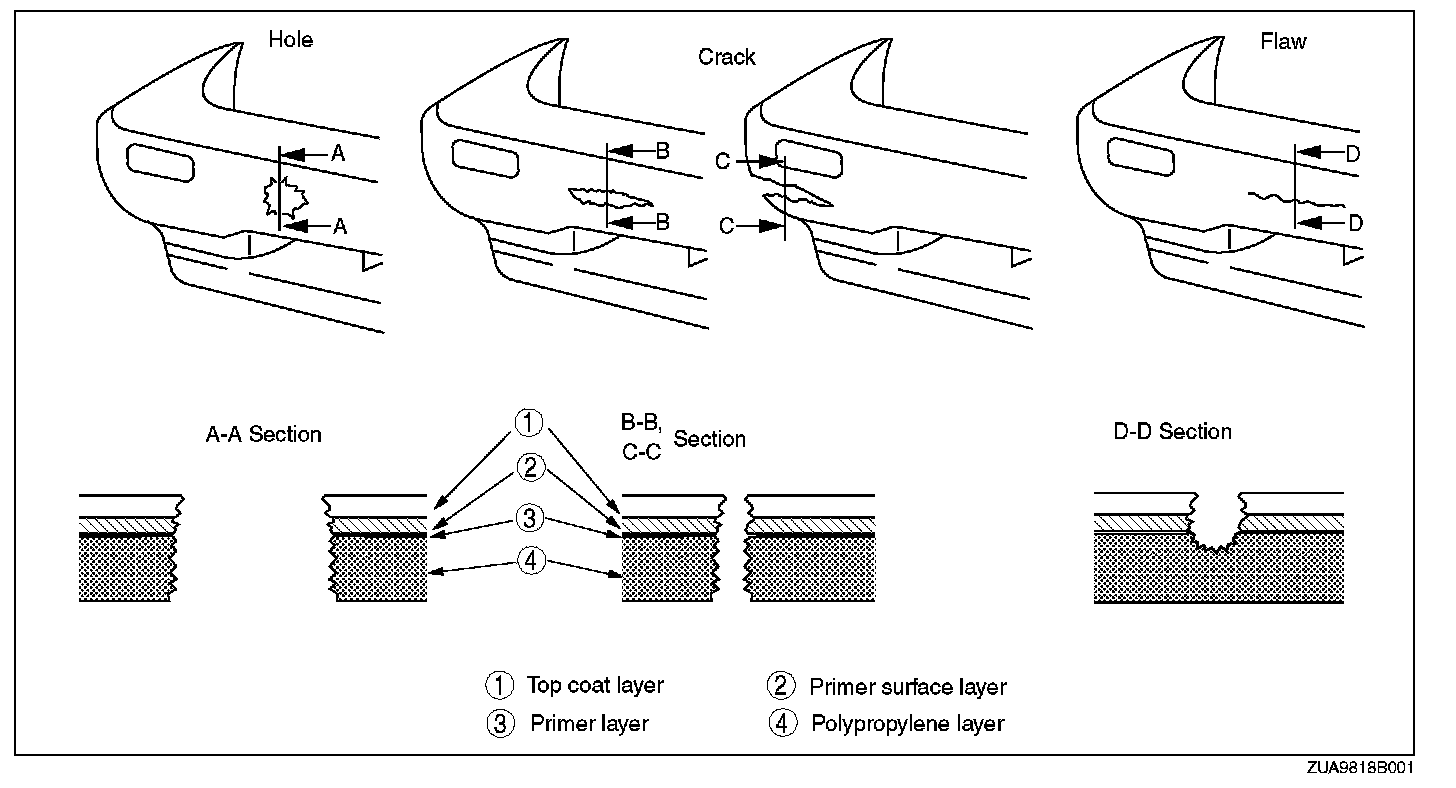 NOTE: Be sure to use only urethane primer for a urethane bumper and polypropylene primer for a polypropylene bumper. Other paints for repairing a polypropylene bumper are the same as those for the urethane bumper.