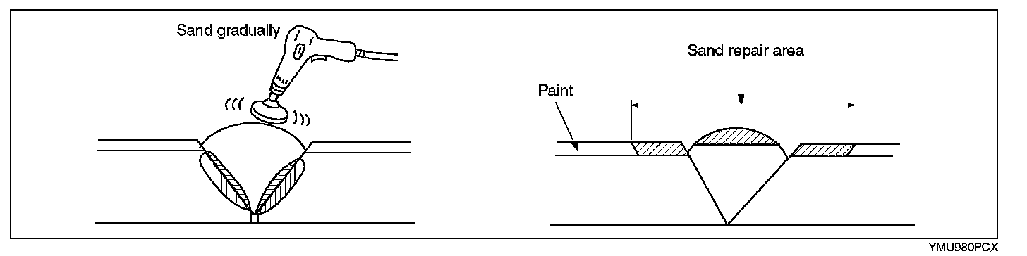 - If excessive force is applied to the area when sanding, the surface will be damaged.