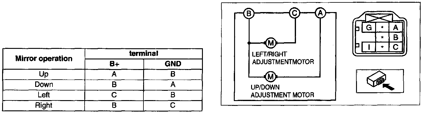POWER OUTER MIRROR INSPECTION1. Apply battery positive voltage to the power outer mirror terminals and inspect the operation of the power outer mirror.