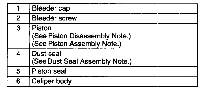 CALIPER (FRONT) DISASSEMBLY/ASSEMBLY1. Disassemble in the order indicated in the table.