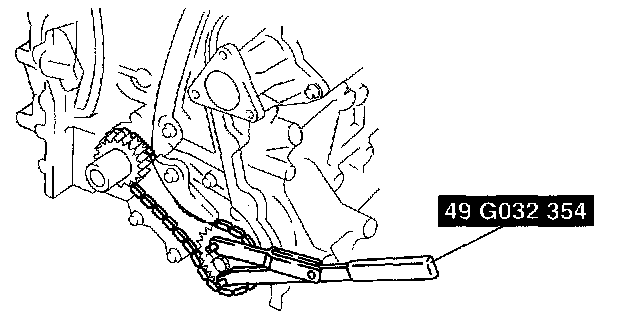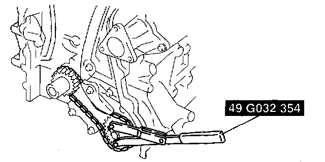 3. Remove the retaining wire or paper clip from the auto tensioner to apply tension to the timing chain.