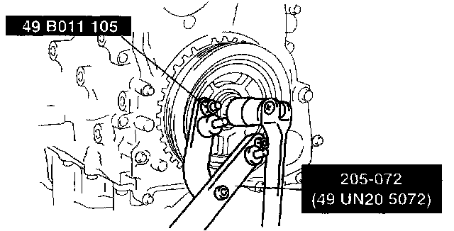 3. Turn the crankshaft clockwise the crankshaft is in the No.1 cylinder TDC position (until the balance weight is attached to the SST).