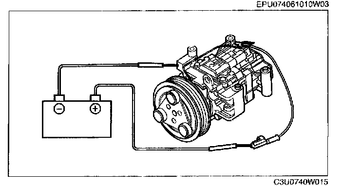 MAGNETIC CLUTCH INSPECTION1. Connect battery positive voltage to magnetic clutch terminal A and the A/C compressor body to ground.