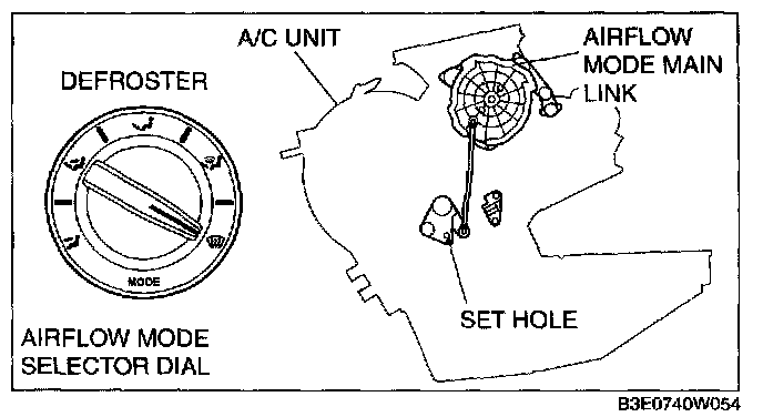CAUTION: If the airflow mode wire is set without first fixing the airflow mode main link position, it is possible that the airflow mode door cannot be switched normally.