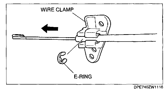 1. Remove the E-ring from wire clamp.