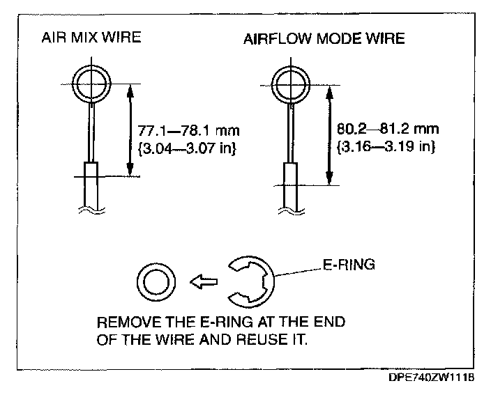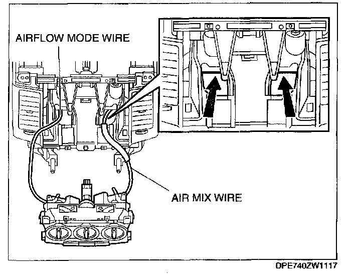 6. Remove the wire clamp with air mix wire and airflow mode wire from the A/C unit.