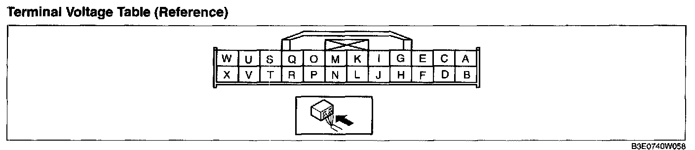 4. By inserting the positive (+) lead of the tester into each climate control unit terminal, measure the voltage according to the terminal voltage table.