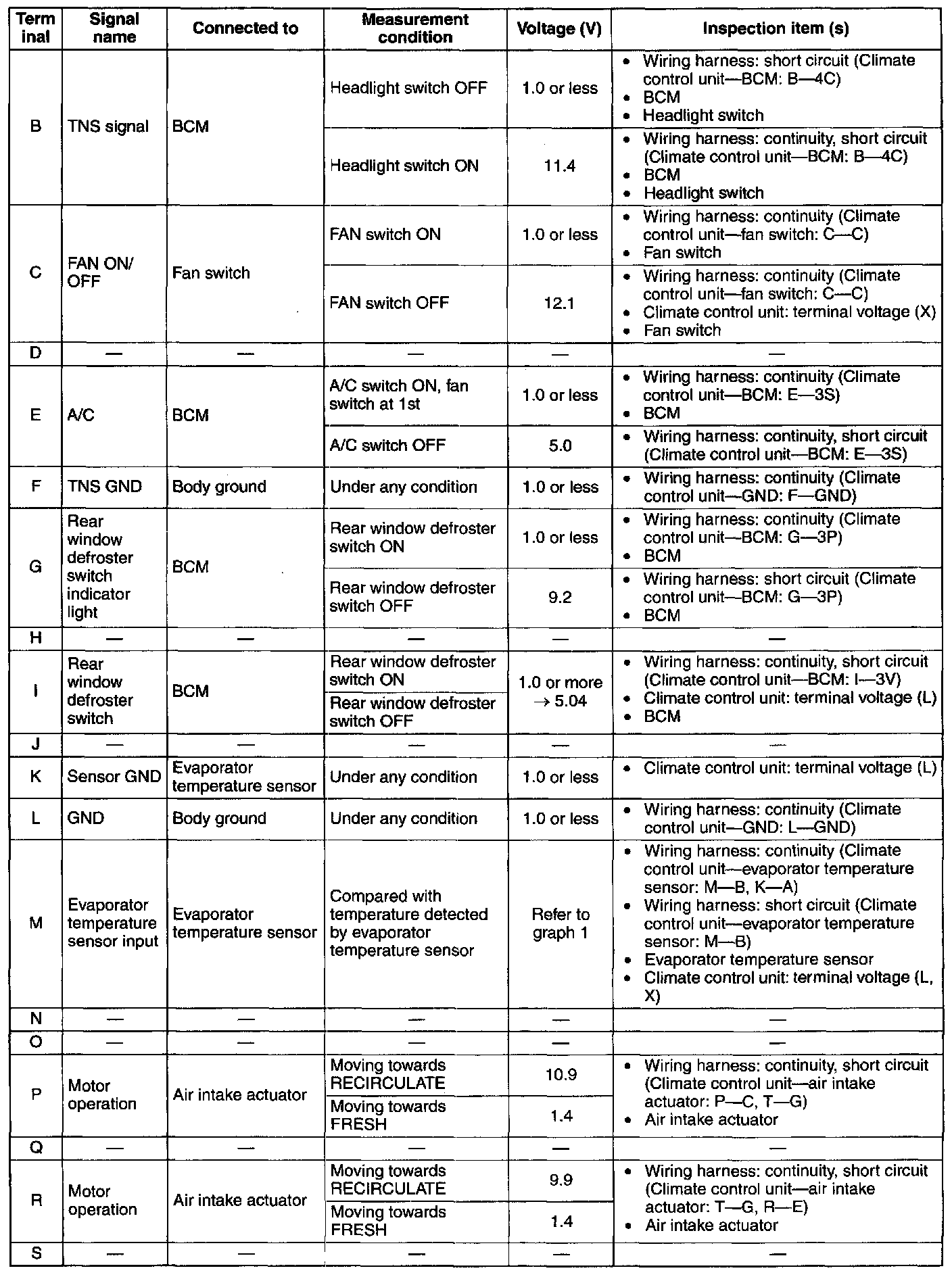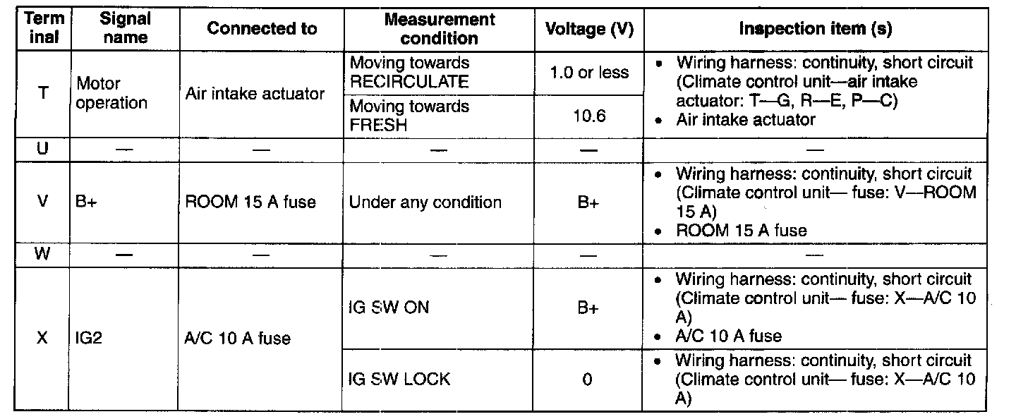 - If the parts under "Inspection item(s)" are found to be normal, replace the climate control unit.