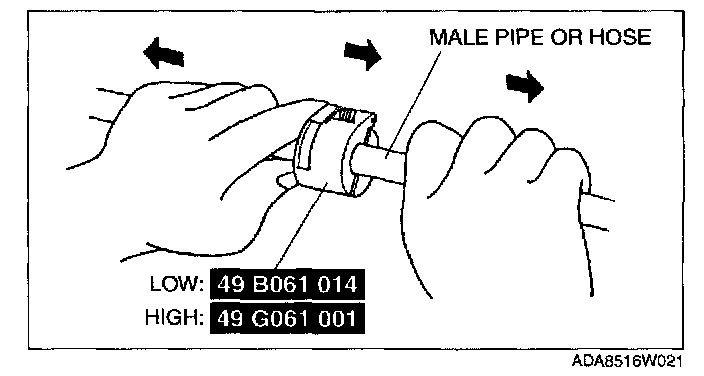 3. Use the SST to disconnect the male pipe or hose from the female by pulling the male pipe or hose.