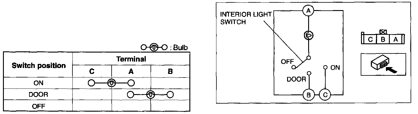 Verify that the continuity between the interior light terminals is as indicated in the table.