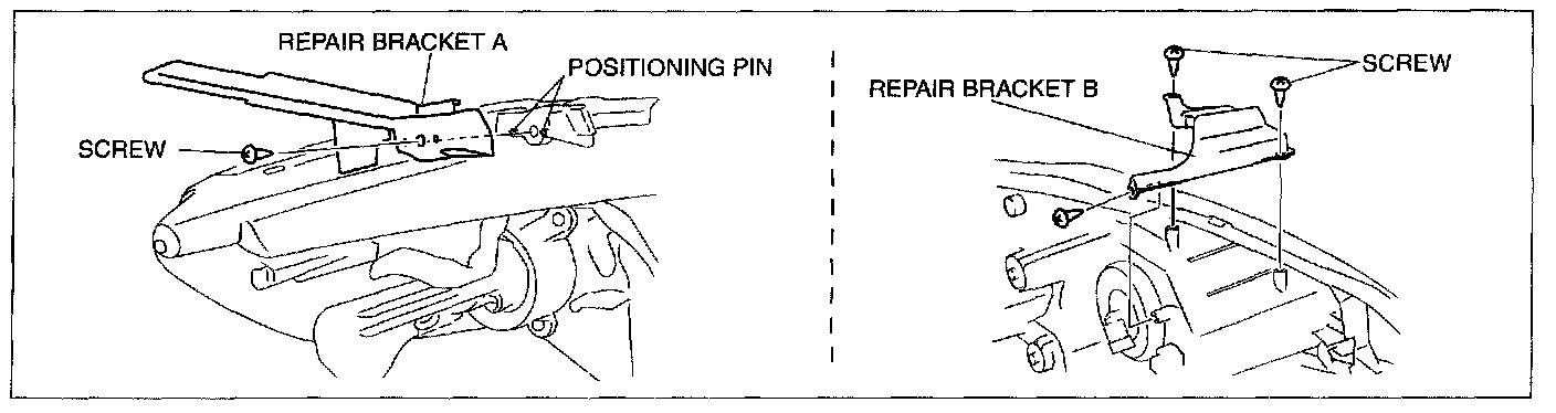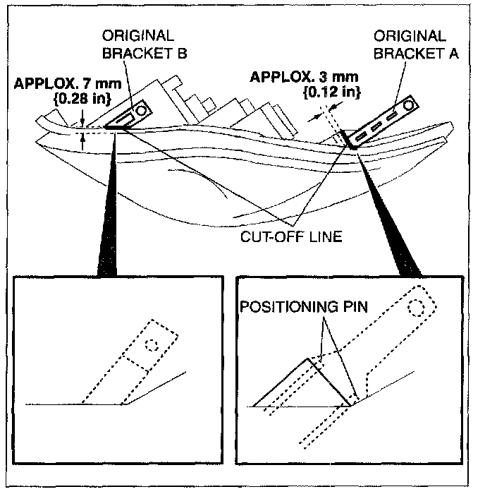 NOTE: After roughly cutting off the brackets, position the repair bracket using the positioning pins, and gradually smoothen any rough areas to create a shape that facilitates installation.