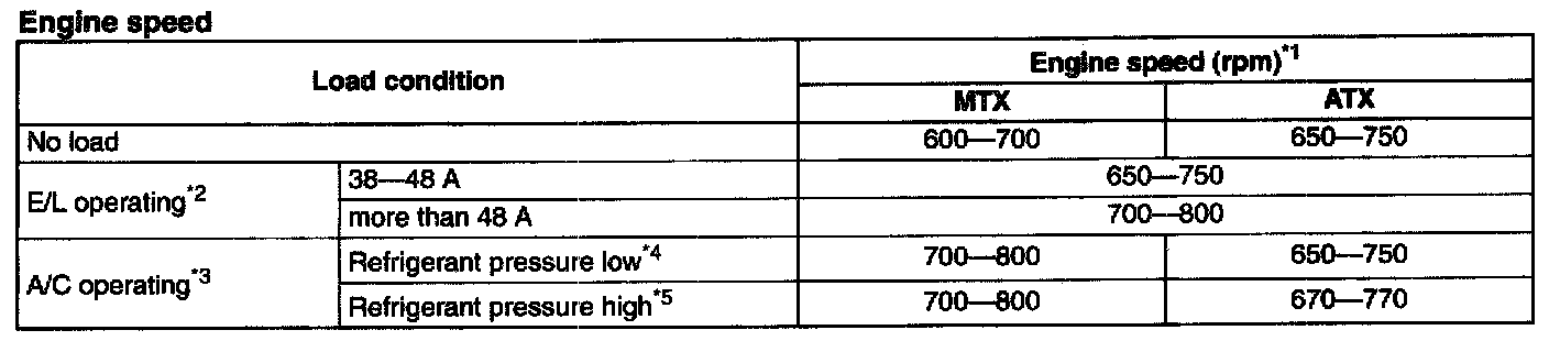 NOTE: Excludes temporary idle speed drop just after the loads are turned on.