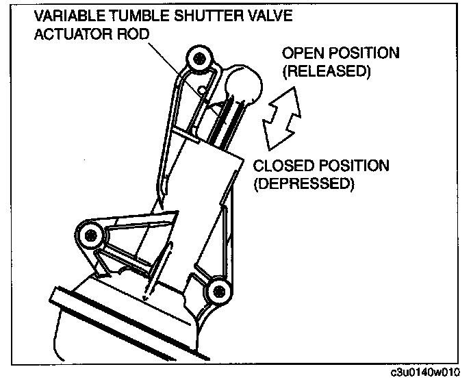 2. Verify that the PCM terminal 2AE voltage is as shown in the following table when the variable tumble shutter valve actuator rod is depressed and released by hand.