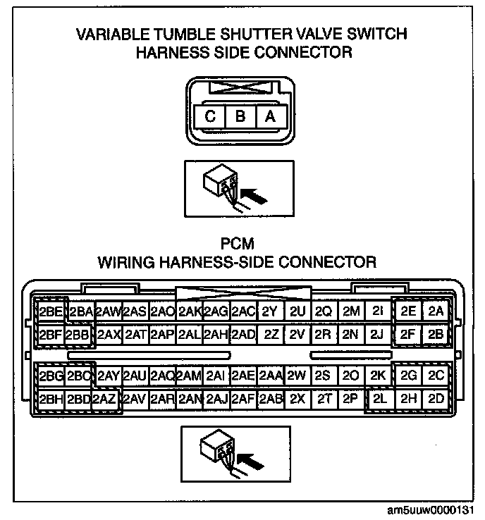 - Variable tumble shutter valve switch terminal C and PCM terminal 2AE