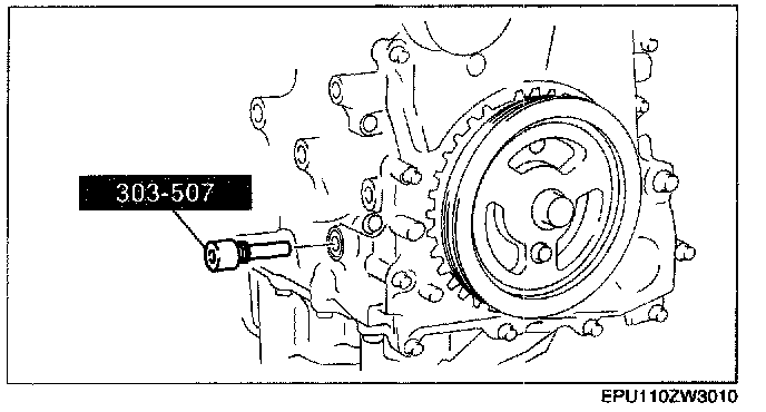 1. Remove the cylinder block lower blind plug and install the SST.